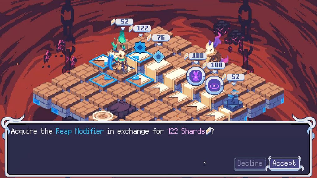 Ainda que a temática seja “simples”, eu gostei bastante da inspiração no sistema inspirado por Into The Breach. Evertried não o expande tanto, mas o suficiente para você entender e aprender como a se movimentar pelo mapa e evitar possíveis armadilhas ou criar armadilhas para os seus inimigos. Tais armadilhas podem envolver danos elementais que aprecem no mapa ou possíveis espinhos e por aí vai. Se a demo foi só um gostinho, quero ver a versão final.
