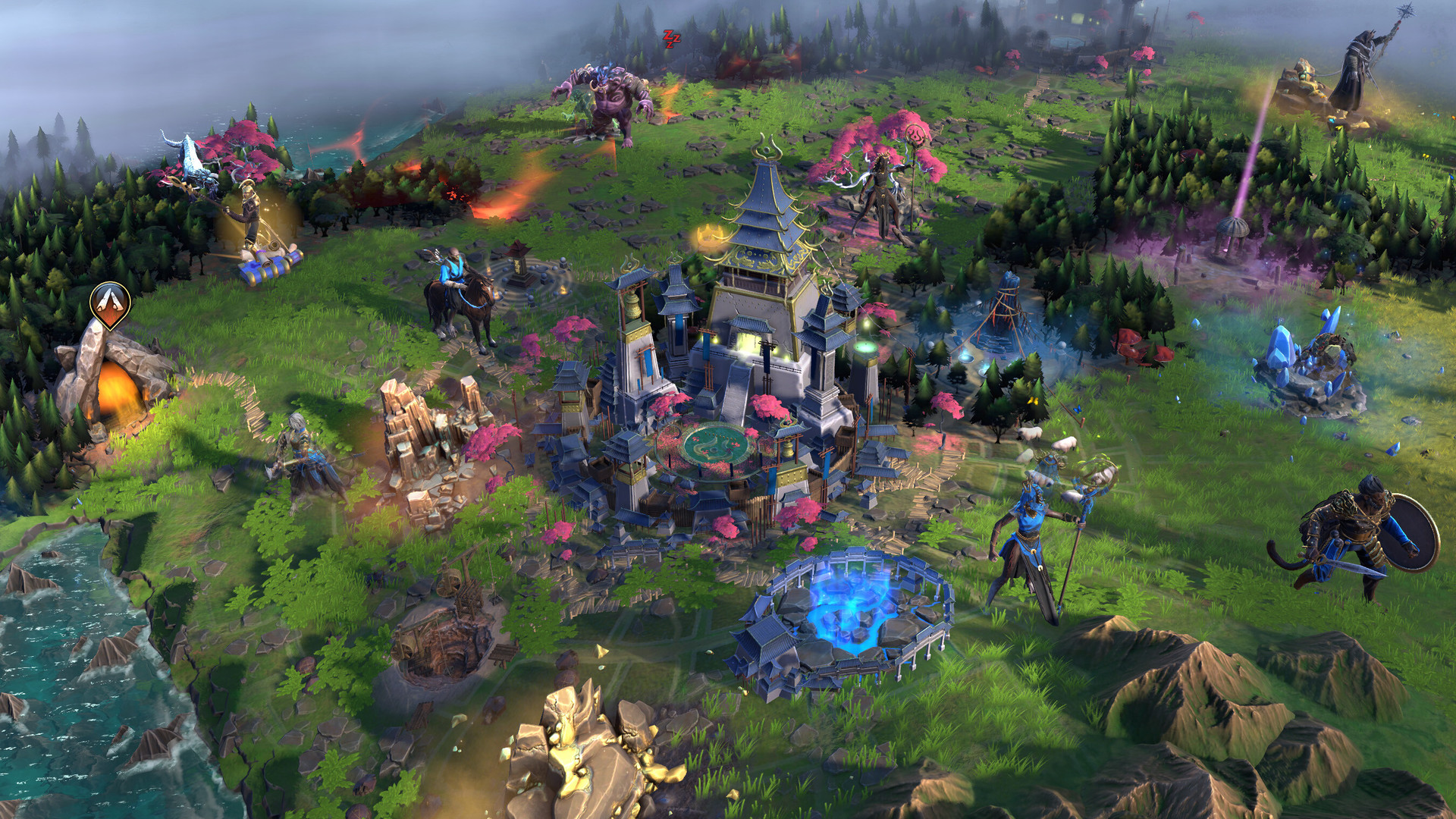 Já os heróis focados em governar tem maior foco em uma ou duas especialidades ao invés de apenas gerar bônus passivo de ouro ou alimentos. Certos heróis vão ter mais afinidade com produção industrial – reduzindo ainda mais o tempo de recrutamento de unidades ou construção de edificações – outros vão aumentar a geração de mana para a cidade.