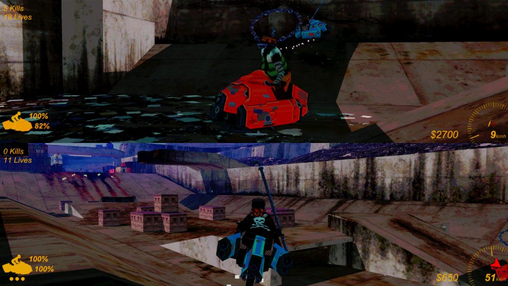 “Airframe Ultra” aparenta visualmente ser um jogo perdido da era PlayStation 1, com visuais bastante “brutos” e ao que tudo indica um grande foco em partidas locais. A jogabilidade é bem simples também: controle uma moto, ataque seu oponente com armas que incluem de espadas até coquetéis molotov e quem for o melhor (ou sobreviver) vence.