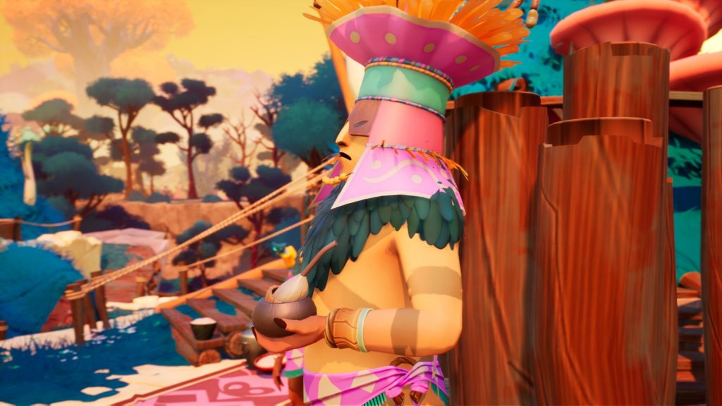 Não vou chegar e dizer que algumas das mensagens exploradas pela desenvolvedora não estão um tanto quanto “batidas” e, para 2024, até parecem como um sonho distante. Os Naan, por exemplo, oferecem a Vic uma flauta “mágica” que a ajuda a recrutar animais para solucionar quebra-cabeças ou curar aqueles que foram afetados pelo que os nativos chamam de “The Withering”.