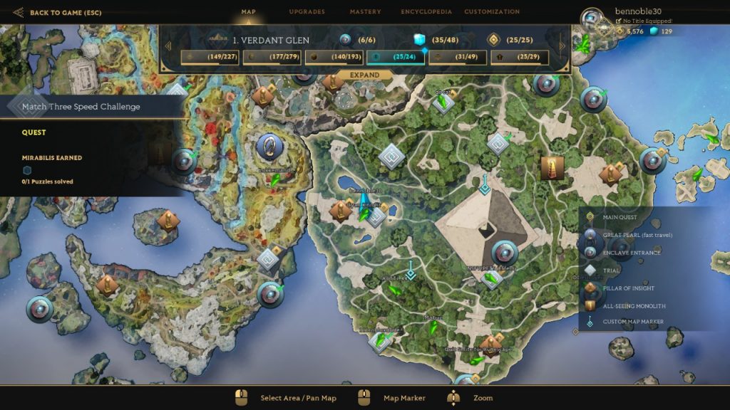 O menor resquício de estrutura contida no jogo são os “Mirabilis” — elementos especiais que você obtém após completar uma cadeia de quests principais — e a sua principal função é acessar novas áreas do jogo. Acredito que tenham sido colocados para evitar que jogadores afobados pulem direto em um quebra-cabeça extremamente complexo presente nas áreas avançadas e, ao menos nesse aspecto, funcionam muito bem.