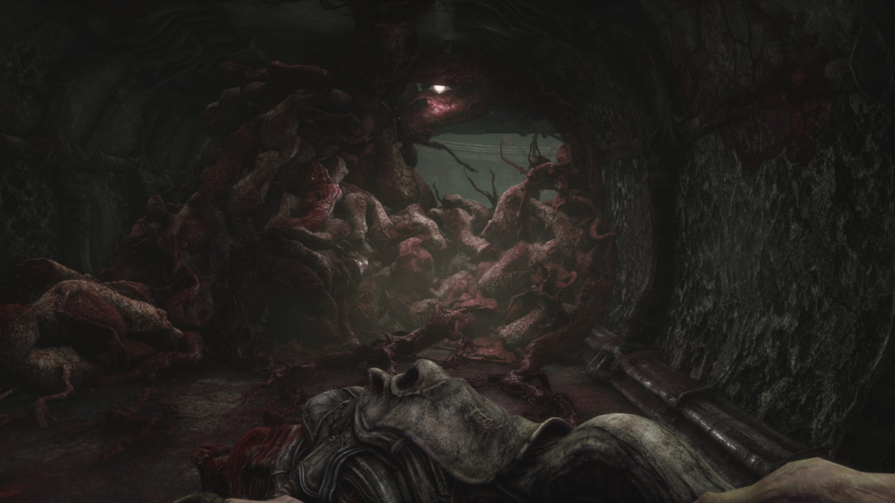 É verdade que “Scorn” é peculiar, mas não por conta destes aspectos. No que diz respeito a jogabilidade, eu concordo que o combate podia ser melhorado em algumas áreas e também o sistema de checkpoint – agora corrigido em uma atualização na data da publicação desta matéria – era frustrante. Por outro lado, estes aspectos são o que tornam “Scorn” o que ele é.