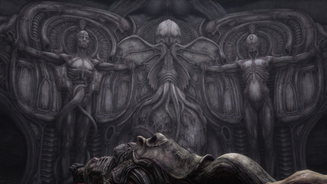 Não posso deixar de mencionar aqui que “Scorn” é marcado por simbologias, algumas delas claras e que vão muito além da mera inspiração em H. R. Giger e Zdzisław Beksiński. Mas sinto que muitas delas estão ali para que cada um possa extrair a sua própria noção do que aconteceu em seu mundo e não ser guiado por teorias “definitivas” que certamente irão aparecer nas próximas semanas ou meses – seja por meio de ensaios, artigos ou vídeos.