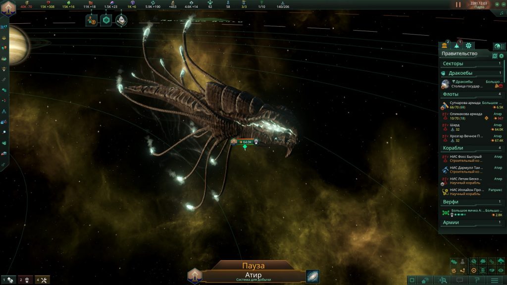 Ao invés de uma janela específica para identificar essas novas espécies, o jogo usa a mesma janela de análise de facções que tende a surgir no começo de uma partida. De início eu imaginei que tive o “azar” de começar do lado de um “Fallen Empire” só para no final descobrir que na realidade eu estava investigando uma nova espécie de criatura espacial. Bem que a desenvolvedora podia ter colocado diferentes avisos ou melhorado os alertas de novas espécies. Ou, eu talvez tenha tido o azar deles não terem atualizado a voz “militarista” da IA que é com a que eu tendo a jogar mais. Entretanto, o que mais me incomoda é o uso das naves científicas para capturar essas criaturas.