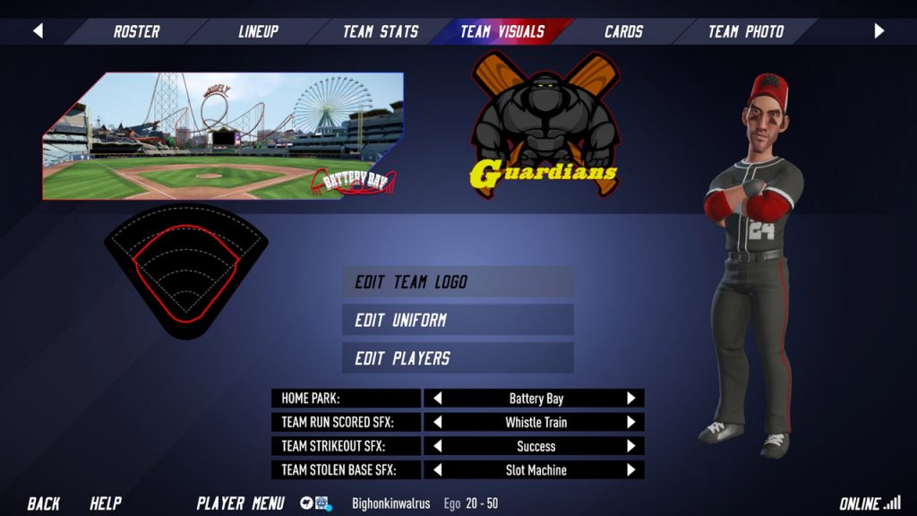 Também sei muito bem que eu sou um gigantesco fã do sistema de ligas e não tenho a menor sombra de dúvidas de que eu vou criar uma, duas, dez ligas diferentes ao longo do ano. O novo sistema de química e sua interligação com os traços de cada jogador já são motivos suficientes para que eu faça isso. Mas também sei muito bem que eu sou um ponto fora da curva, o tipo de fã de “Super Mega Baseball 4” que vai ficar aficionado pelas tabelas, que vai pensar e repensar por horas antes de contratar um novo jogador, estabelecer a melhor equipe possível e vê-la evoluir ao longo dos anos.