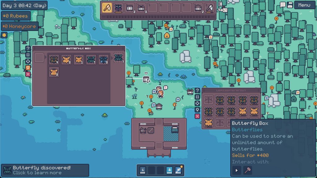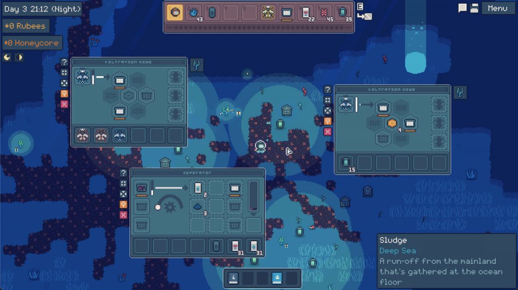 Um dos grandes destaques é o novo bioma marítimo. Como abelhas se multiplicam no fundo do mar? Eu não sei, mas sei que é uma realidade em “Apico”. Além disso, novas espécies e combinações de abelhas estarão disponíveis, assim como novas quests e mecânicas de administração. Uma delas, por exemplo, dará um panorama geral de todos os seus tipos de abelha e também virá com uma caixa de “depósito” que pode coletar todo item que você quiser automaticamente.