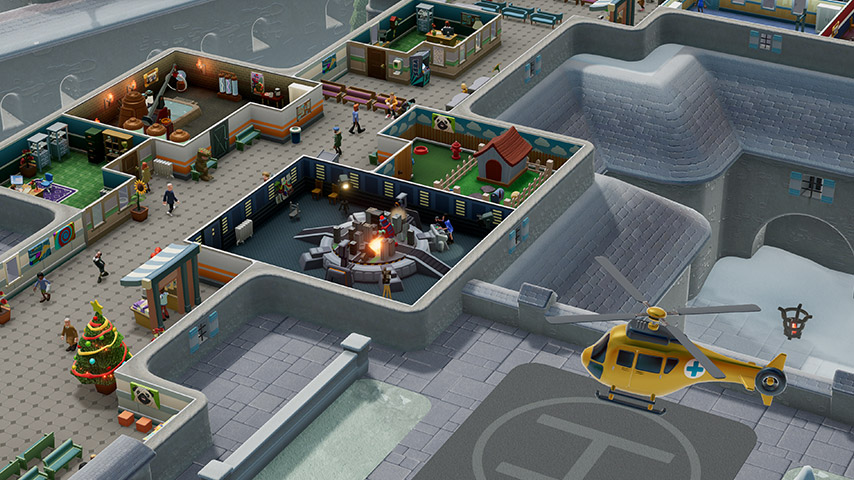 Primeiro DLC de Two Point Hospital adiciona novos hospitais e itens com temática natalina.