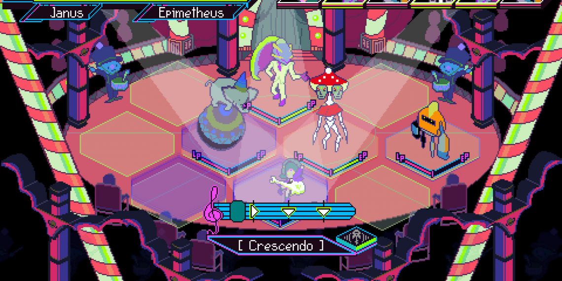 Essa temática se reflete direto no sistema de combate. Vários golpes possuem notas musicais que você precisa tocar e, se acertar todas, causa um dano crítico. Muitos inimigos também têm uma inspiração direta de instrumentos musicais.