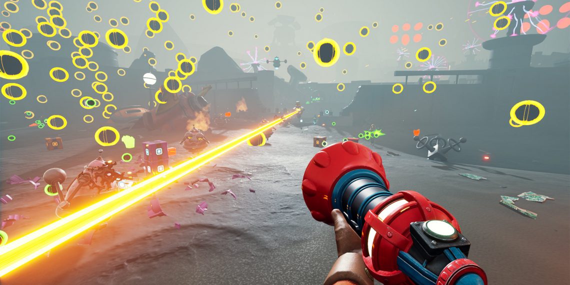 O que me chamou a atenção, além do estilo “bullet hell” onde desviar de cada bala é um ato de extrema precisão e coordenação, é a variedade absurda de armas e quests secundárias no game. Não falo de “vá ali e colete X materiais”, mas sim “vença robôs em uma partida de basquete”.