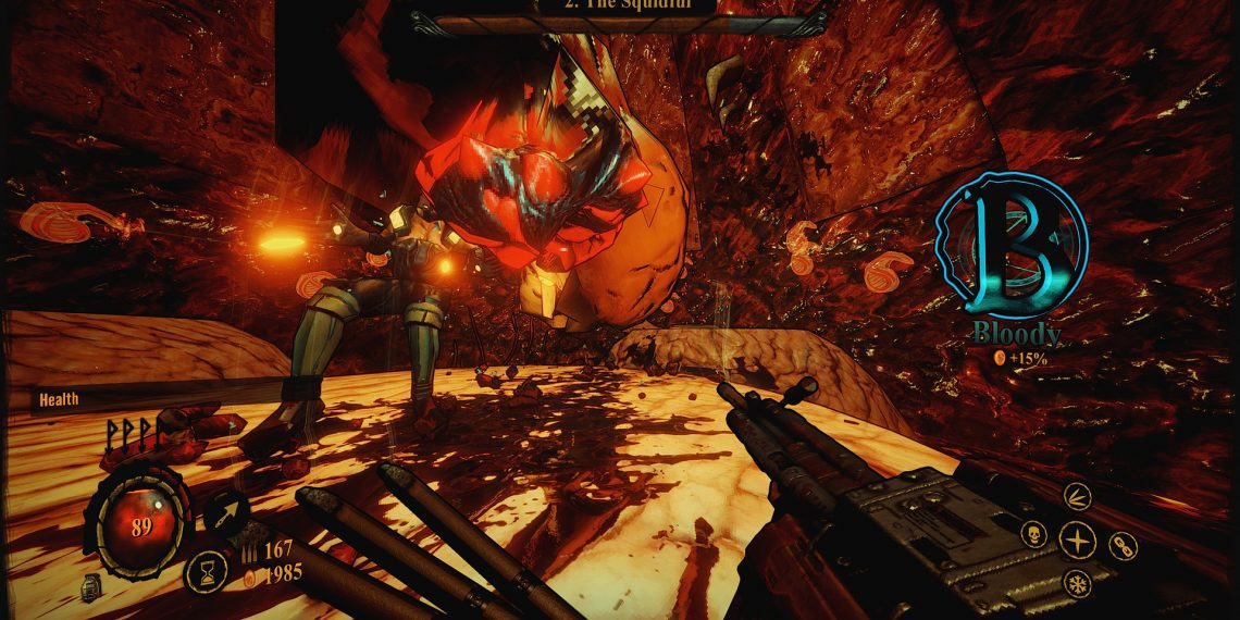 Com cerca de 30 fases e dezenas de combinações de armas, “Devilated” já havia me conquistado durante o seu período de acesso antecipado justamente por saber como combinar um bom uso de diferentes armas e variedades de inimigos. É aquele tipo de shooter onde você nunca fica parado, mas ao mesmo tempo não fica relegado a meras arenas onde o objetivo é destruir todos os monstros ou ficar pulando em círculos. Cada fase é relativamente bem estruturada com um começo, meio e fim, chaves para acessar certas áreas e segredos até dizer chega.