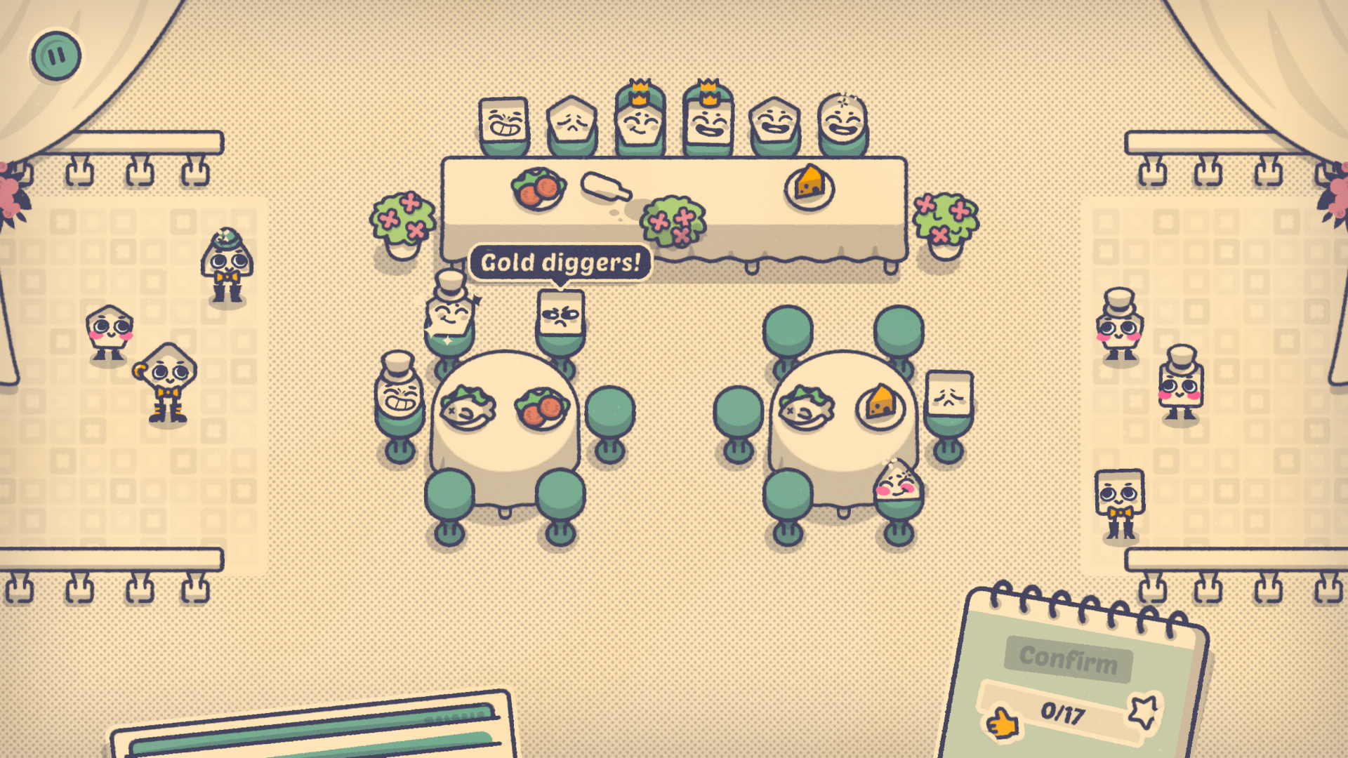 As próprias imagens já mostram partes do jogo que claramente vão se tornar mais complexas, como tentar encontrar o lugar “perfeito” para 17 pessoas em um restaurante sendo que uma não quer tomar café, outra não gosta de um certo tipo de comida, e outra tem um chapéu imenso que bloqueia a visão dos outros. Doug Dimmadome, é você?