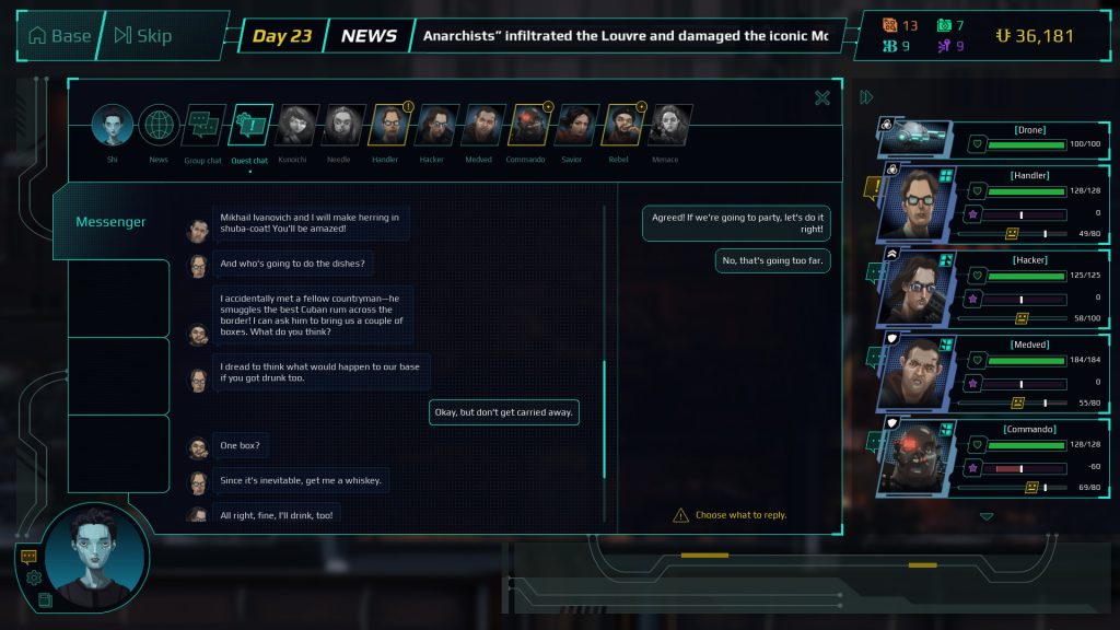 O que me fez com que “Twilight Wars” entrasse no meu radar é a ênfase na narrativa e diálogos entre as dezenas de personagens. Você pode recrutar os mais diferentes tipos de pessoas, mas isso não significa que elas vão se dar bem dentro e fora do campo de batalha. Isso pode gerar debuffs, brigas ou até mesmo fogo amigo. É tão raro ver um jogo fazer isso que eu consigo contar nas mãos as implementações – como “Jagged Alliance” – que funcionam bem.