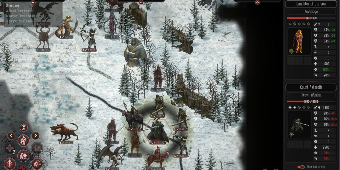 “Shields of Loyalty” vai muito além do típico “use os flancos para derrotar o inimigo”, aposta pesado em elementos como limite de turnos e em biomas especiais onde as suas unidades podem tomar dano contínuo se ficarem próximas demais de certas áreas do mapa.