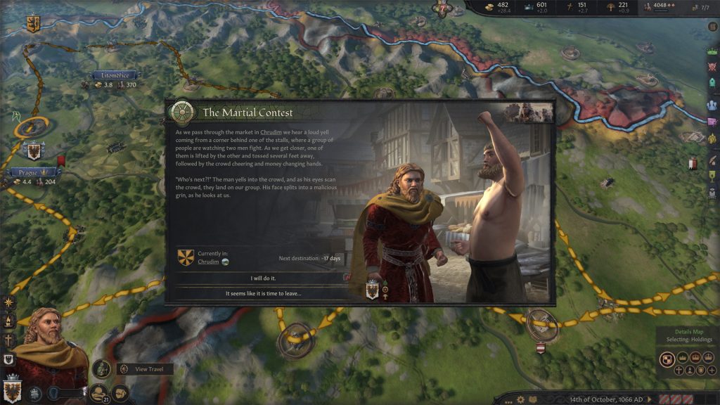 Acredito que a Paradox notou o quão impactante foi o sistema de viagem de “Tours and Tournaments” junto com o novo sistema de aventureiros para “Crusader Kings 3”. Como comentei antes, abraçar o lado mais RPG do Grand Strategy funciona muito bem para o game. Não é à toa que “Wandering Nobles”, o terceiro e último DLC do game para este ano é focado nele. Ele vai sair em 4 de novembro por R$17,99 e está incluso no passe de temporada do ano 3.