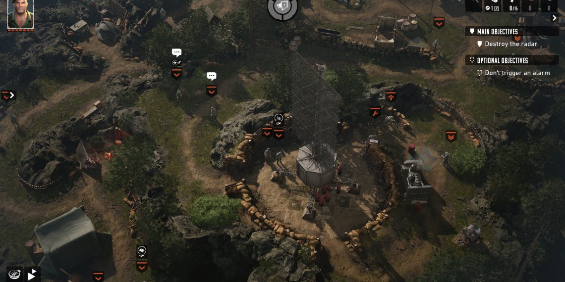 Mas, como “Commandos: Origins” é um jogo moderno, ele também vem com algumas novas adições como a possibilidade de eliminar inimigos usando o cenário e um sistema mais robusto para enxergar os “cones de visão” dos oponentes.