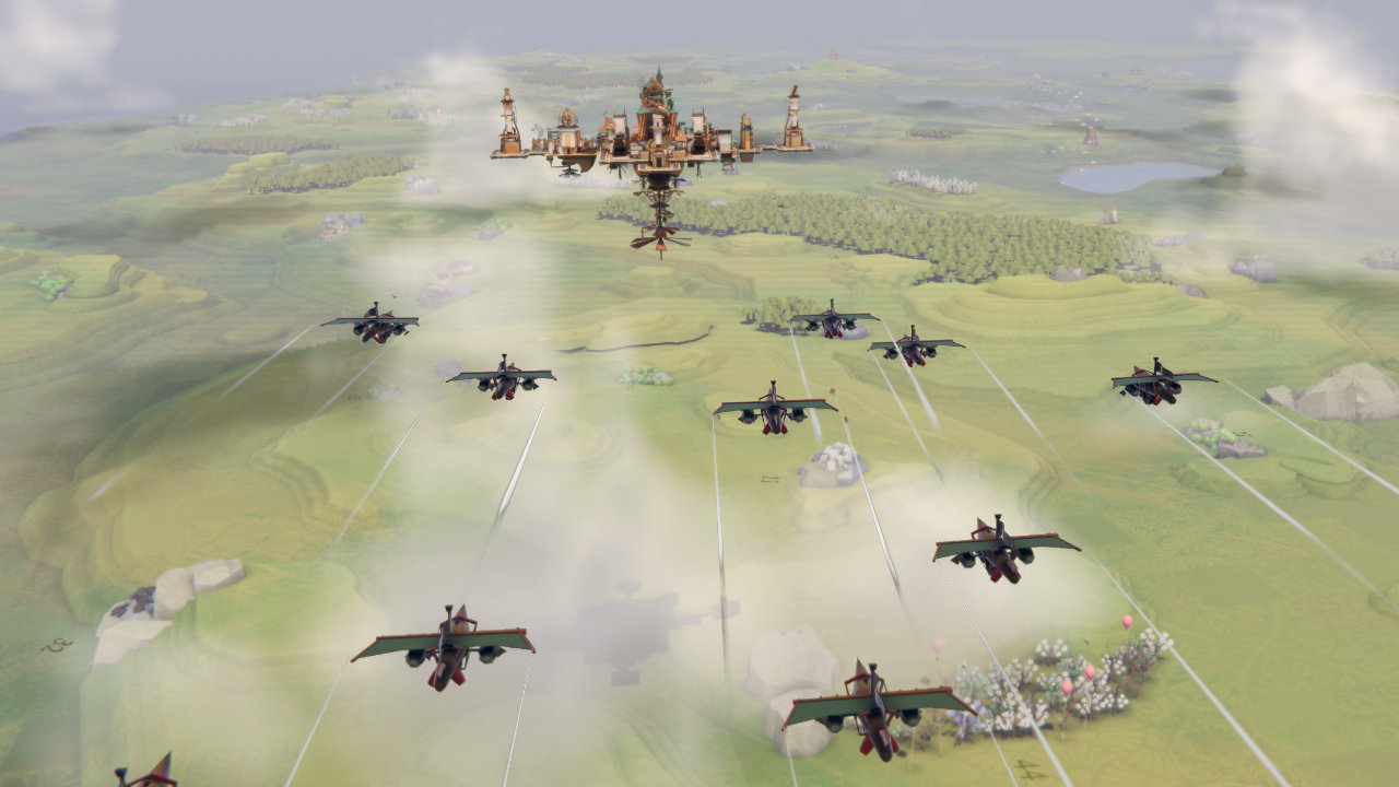 É uma excelente jogada por parte da The Wandering Band, especialmente considerando que o principal desafio é criar uma cidade flutuante que consiga se sustentar com hélices. Aliado a isso vem a necessidade de estar em constante movimento em busca de recursos. Uma camada extra de combate e a construção de equipamentos pesados vai deixar o jogo bem mais desafiador.