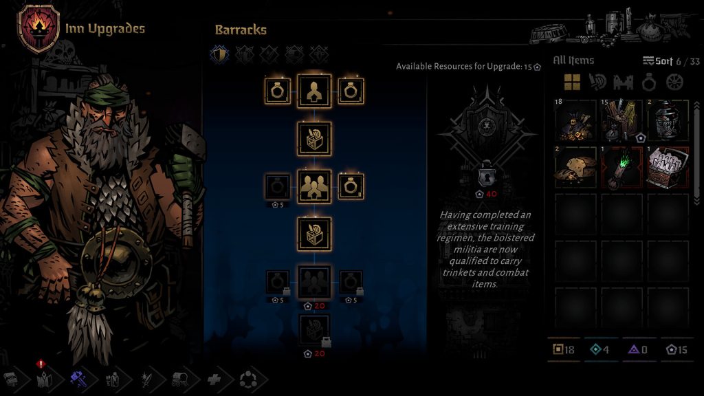 Esse é o terceiro módulo para “Kingdoms” – de longe uma das minhas adições favoritas para “Darkest Dungeon 2”. O modo, embora ainda não se assemelhe tanto as partidas do jogo original, ao menos cria uma estrutura mais interessante com a necessidade de viajar pelo mapa e defender diferentes vilarejos de ataques. Além disso, ele tem todo um sistema de progressão que requer obtenção de mais recursos e a manutenção de todos os vilarejos e torres de defesa.