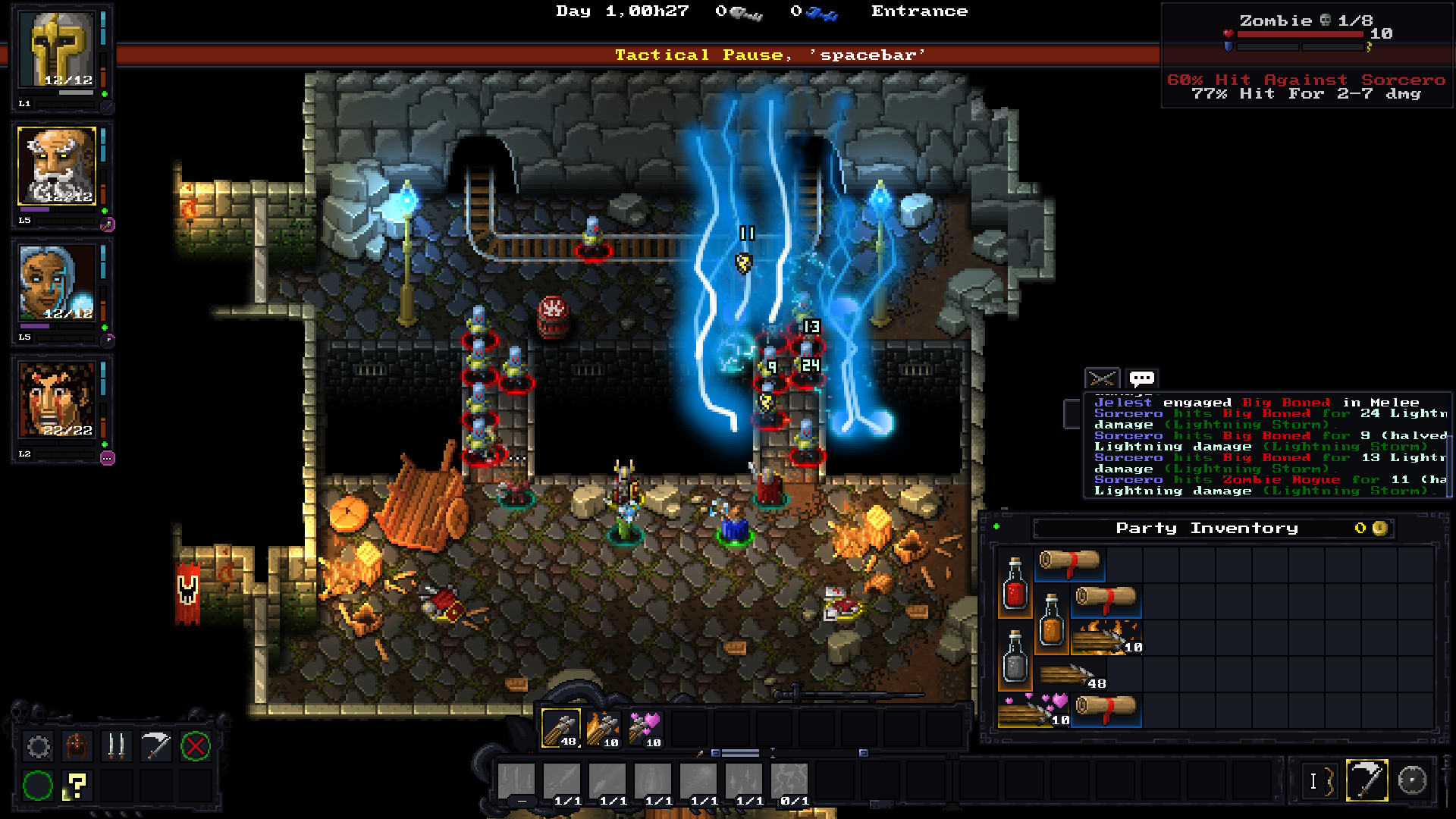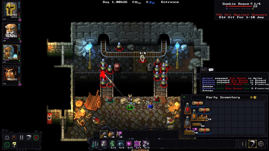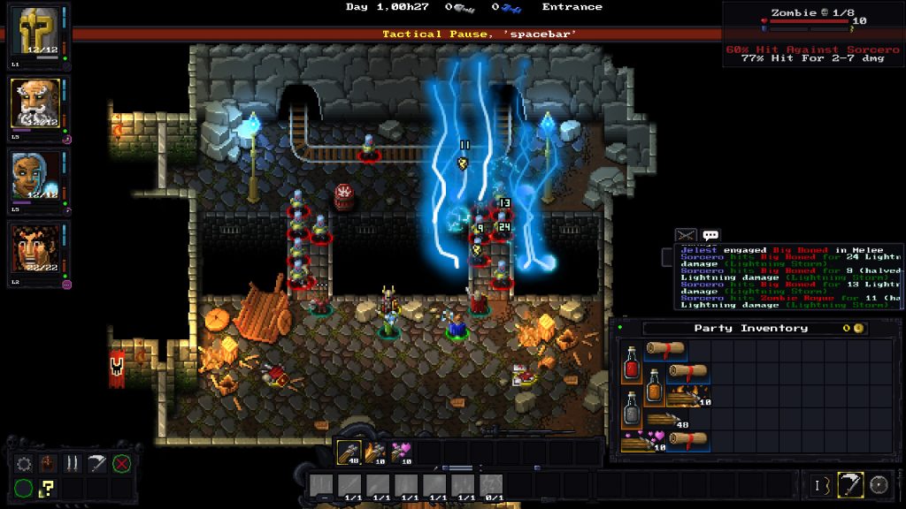 “Escape the Mad Empire” utiliza um sistema que não está mais tão presente em RPGs como em meados dos anos 2000. O “Real Time With Pause”. Em suma, a ação ocorre em tempo real, mas você pode interromper a qualquer momento para reavaliar a situação ou preparar magias.