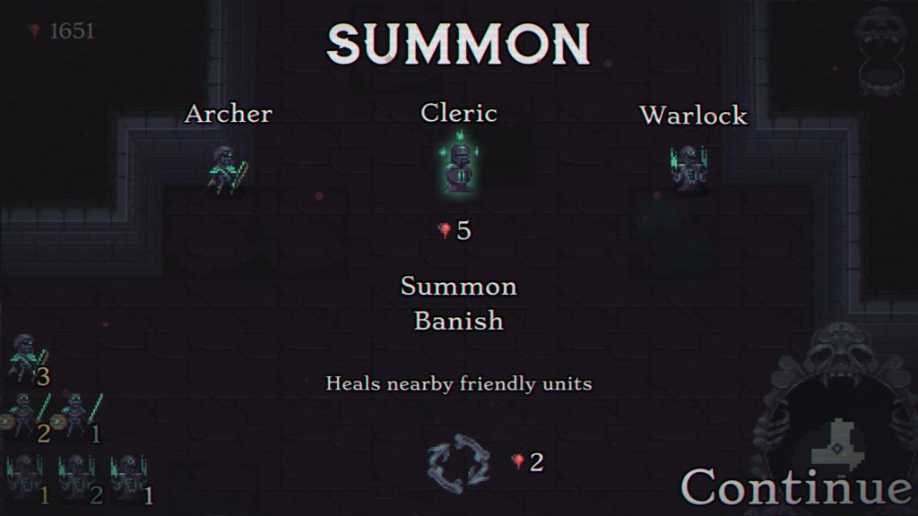 Se você leu o termo e já pensou no estilão clássico de jogar em primeira pessoa, esqueça. “Skull Horde” utiliza uma visão top-down e um sistema de autobattling, inusitado para o gênero, mas que pode funcionar muito bem para a sua premissa.