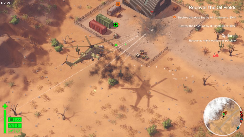 Claramente inspirado por jogos como a franquia “Desert Strike”, a versão de Early Access de “Cleared Hot” vai ser composta pelo capítulo inicial do jogo – que se passa no Texas possui quatro missões principais – missões secundárias, e vários helicópteros personalizáveis.