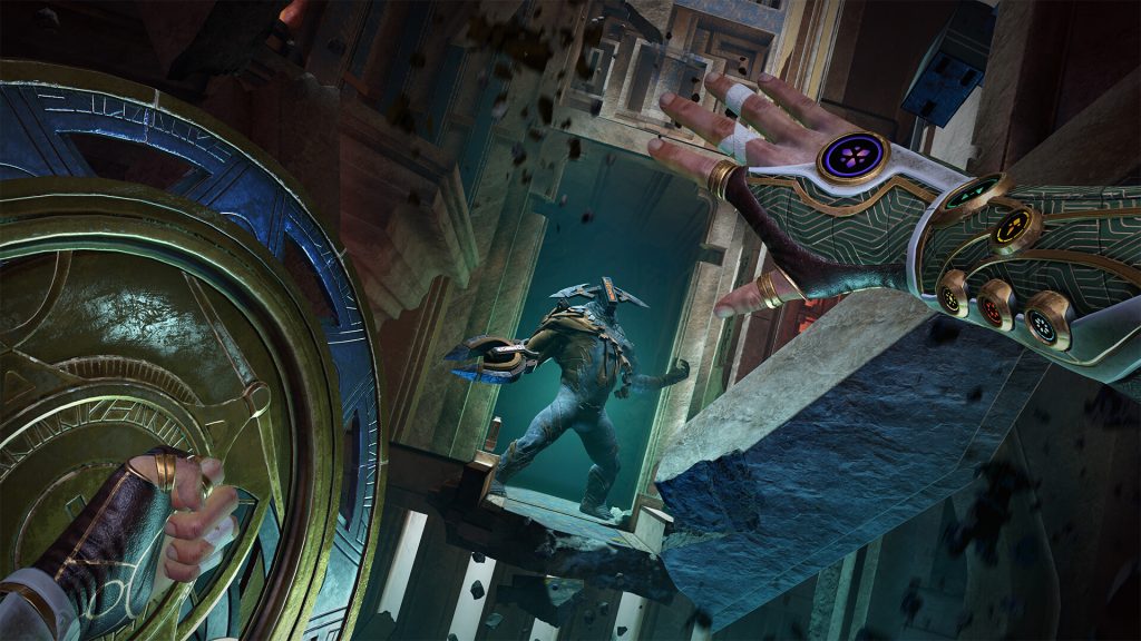 Mantendo o estilo de “ação cinematográfica” – se é que posso usar este termo em VR – “Reach” conta a história de um “herói” que, por motivos desconhecidos, acaba em uma dimensão paralela e agora precisa retornar para a sua realidade. Claro que, para isso, você vai ter que detonar uma horda de robôs, resolver quebra-cabeças e dar saltos mirabolantes — uma marca registrada da desenvolvedora à esta altura.