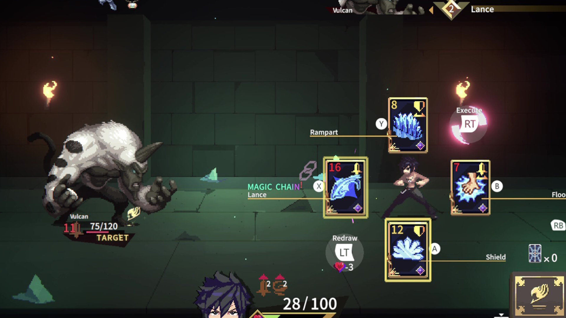 Como todo bom deckbuilder, espere geração procedural de mapas, dezenas de cartas que podem ser melhoradas ou transformadas em cartas mais potentes e vários inimigos e chefões. O que me chamou muito a atenção foi o sistema de combo onde você pode utilizar múltiplas cartas que tem alguma forma de sinergia para derrotar os inimigos, e o mapa do labirinto que me lembra um jogo de tabuleiro.