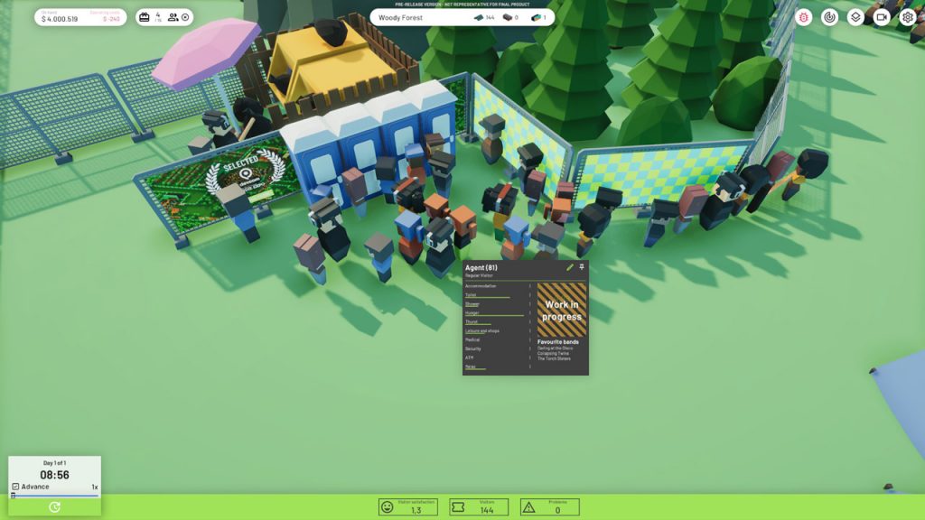 Para um jogo em acesso antecipado e com previsão para continuar por mais um ano, Festival Tycoon está um tanto quanto “completo” por assim dizer. Todas as funcionalidades básicas de construção e gerenciamento do festival estão presentes e Johannes Gäbler espera usar o próximo período para refiná-las e adicionar mais complexidade ao jogo.