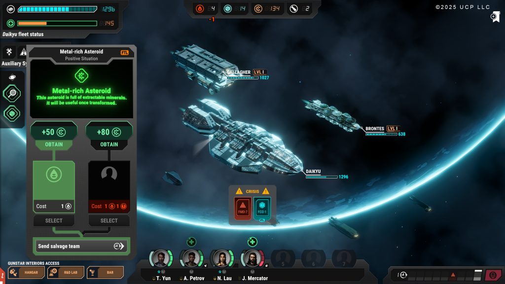 O vídeo de anúncio e as primeiras imagens demonstram não só a clara evolução do sistema que a Alt Shift usou em “Crying Suns”, mas também uma forte inspiração em “Faster Than Light”. O que me chamou bastante a atenção é que, ao contrário dos jogos citados, “Battlestar Galactica: Scattered Hopes” conta com situações especiais e eventos que podem ocorrer no meio da batalha. Você pode, por exemplo, tomar um dano crítico a um dos seus sistemas vitais e ter que recorrer a usar um dos recursos da sua frota para evitar que ele seja completamente destruído.