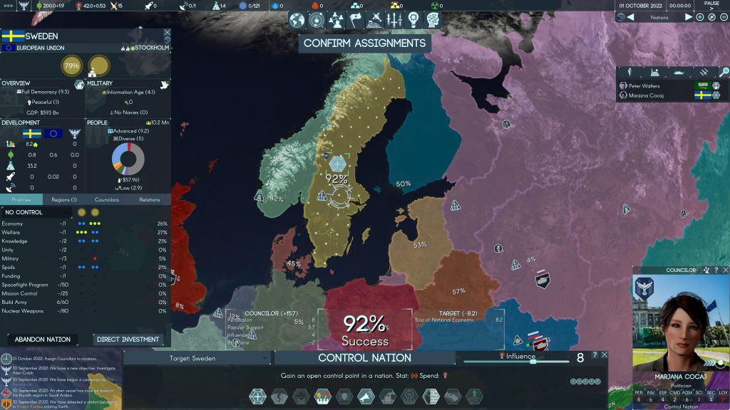 Embora a sua interface não seja ainda a mais amigável de todas, quem conseguir decifrá-la (há bons guias no Steam e Youtube para isto) vai encontrar um jogo dividido em turnos onde você precisa se infiltrar em organizações, converter países para a sua causa, travar combates militares na Terra e depois disso começar a construir espaçonaves e satélites para batalhas interestelares.
