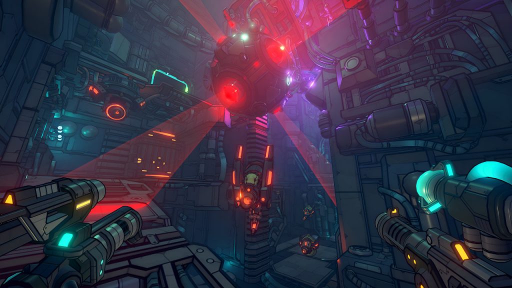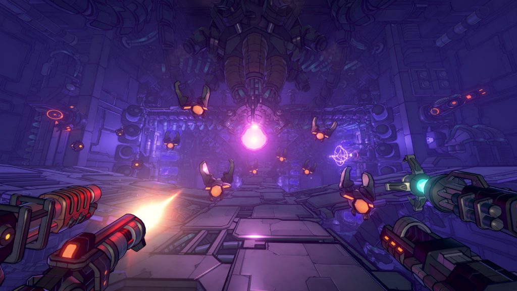 Uma das maiores “inovações” que “Gunhead” faz em comparação a “Cryptark” é a inclusão de quatro tipos diferentes de armamentos por run. Embora o antecessor se desse “bem” com duas armas, a jogabilidade ainda mais frenética da sequência faz o uso das armas – e gerenciamento dos diferentes cooldowns – praticamente essencial.