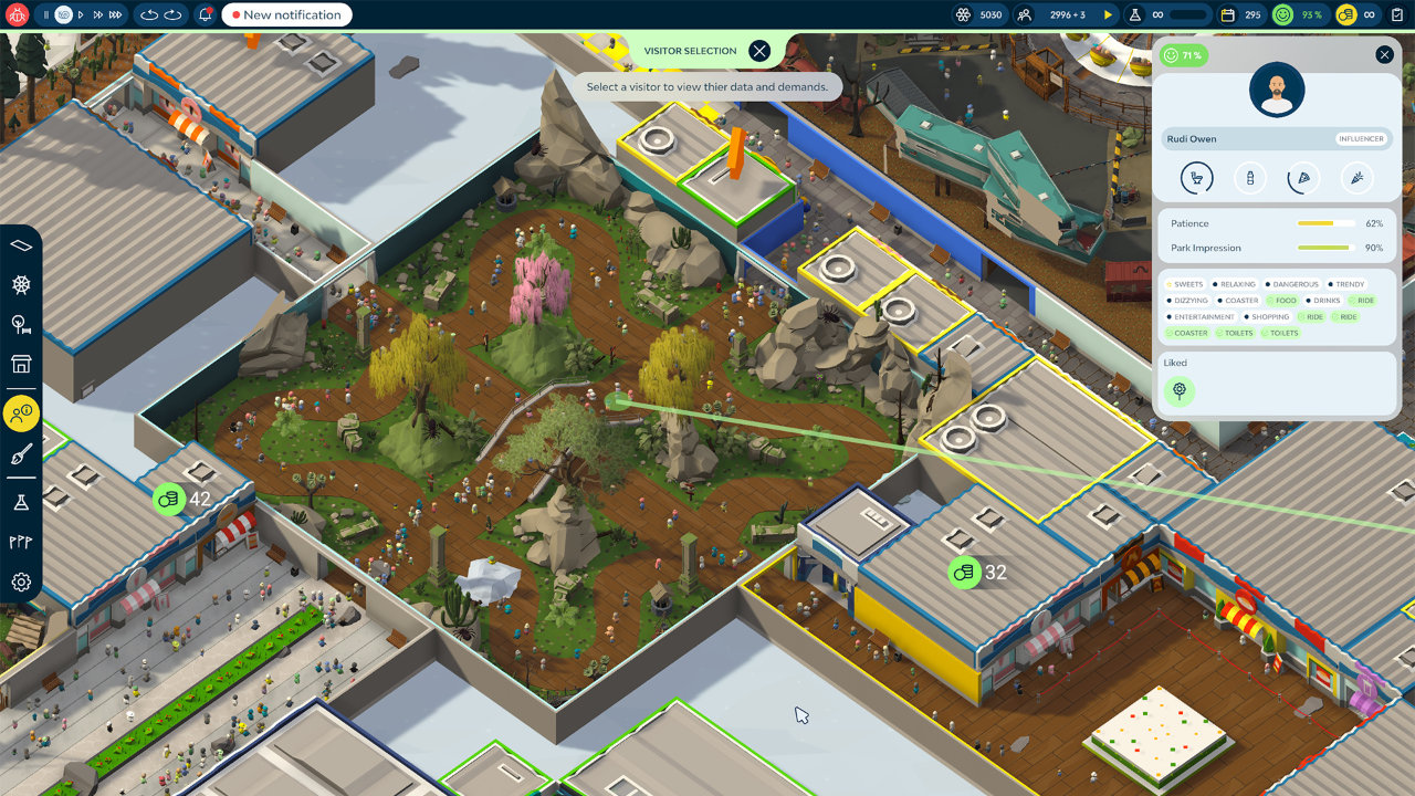 As próprias atrações aparentam ter mais opções para ajustar a intensidade do que muitos outros jogos que vi por aí. Eu, por exemplo, nunca vi um jogo onde você pode ajustar a rotação de um motor ou a intensidade dele fora as tradicionais montanhas russas.