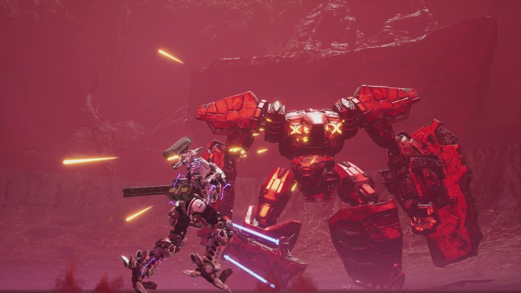 Por mais que eu tenha gostado de “Daemon X Machina: Titanic Scion”, e olha que o facilmente coloco acima do seu antecessor, as lutas contra os chefões deixaram muito a desejar. A maioria deles tem ataques básicos e uma IA bem rudimentar ao ponto de tornar até a mais intensa das batalhas em algo monótono. Muitas delas eu simplesmente fiquei em um ponto do mapa e ataquei o chefão até esgotar a barra de vida dele.