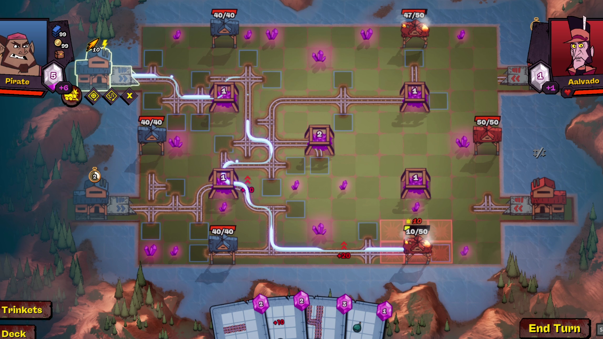 Creio que haverá cartas que vão ser usadas obviamente para impedir que isso aconteça, além de múltiplas partes que podem ser colocadas para aumentar seu dano, velocidade ou “dano de retaliação” ao atingir uma locomotiva inimiga ou um obstáculo.