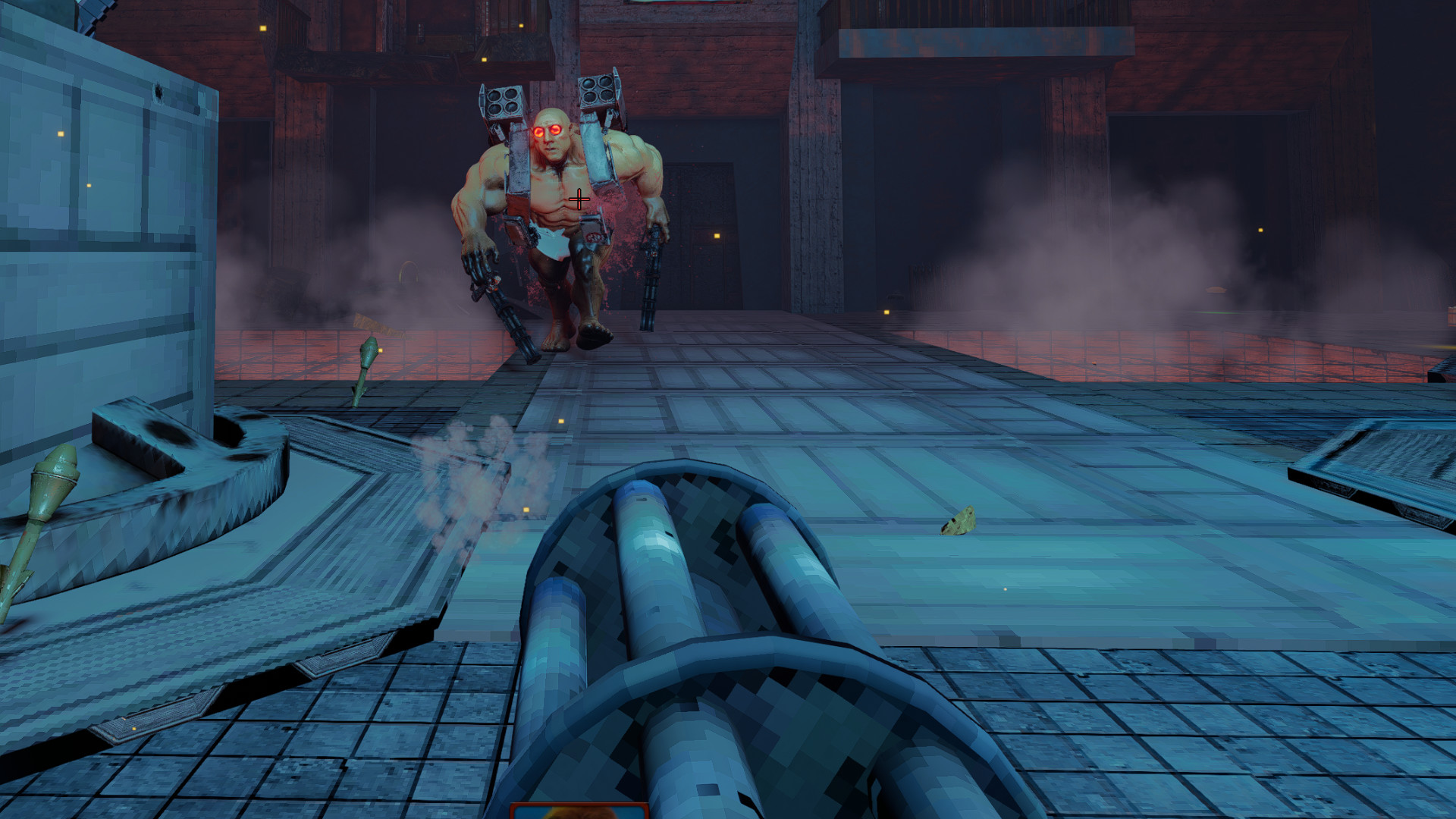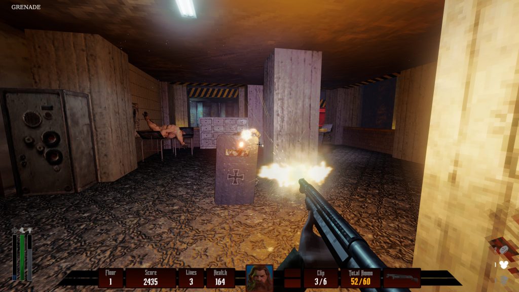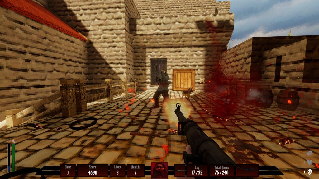 Do que eu joguei da demo, “Darkenstein 3D” é um misto de “Wolfenstein 3D” com os exageros de franquias como “Serious Sam”. Embora você não vá te fazer correr de hordas de inimigos, o arsenal do game é um tanto quanto… peculiar. De espingardas que claramente não foram usadas durante a Segunda Guerra Mundial a ratos explosivos. Mas, bem, “Wolfenstein 3D” possuía um Mecha-Hitler, quem sou eu para julgar?