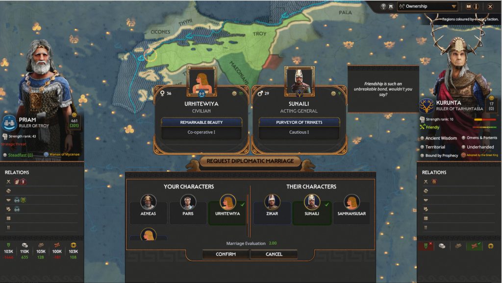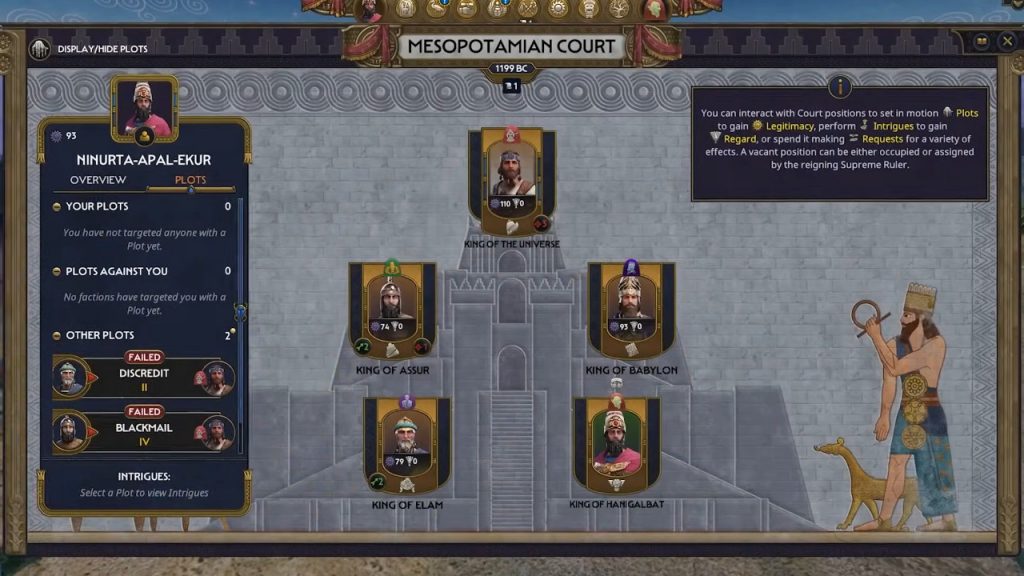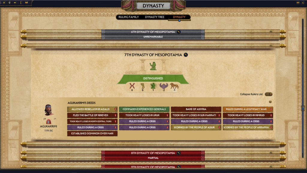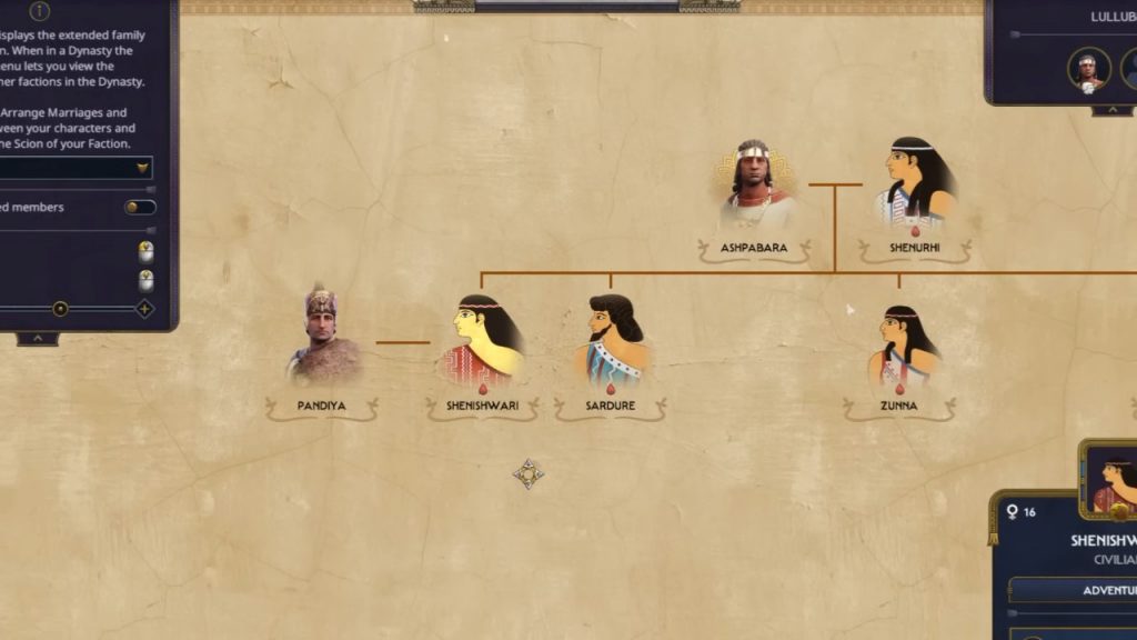 Mas talvez a melhor adição da atualização é a que dá nome a ela: Dinastias. Em suma, “Total War: Pharaoh” vai funcionar de forma mais similar a jogos como Rome e Rome II do que a franquia “Saga”. Ou seja, você vai poder ter uma família, se casar, morrer em batalha e o seu legado vai continuar com seus filhos ou seus generais.
