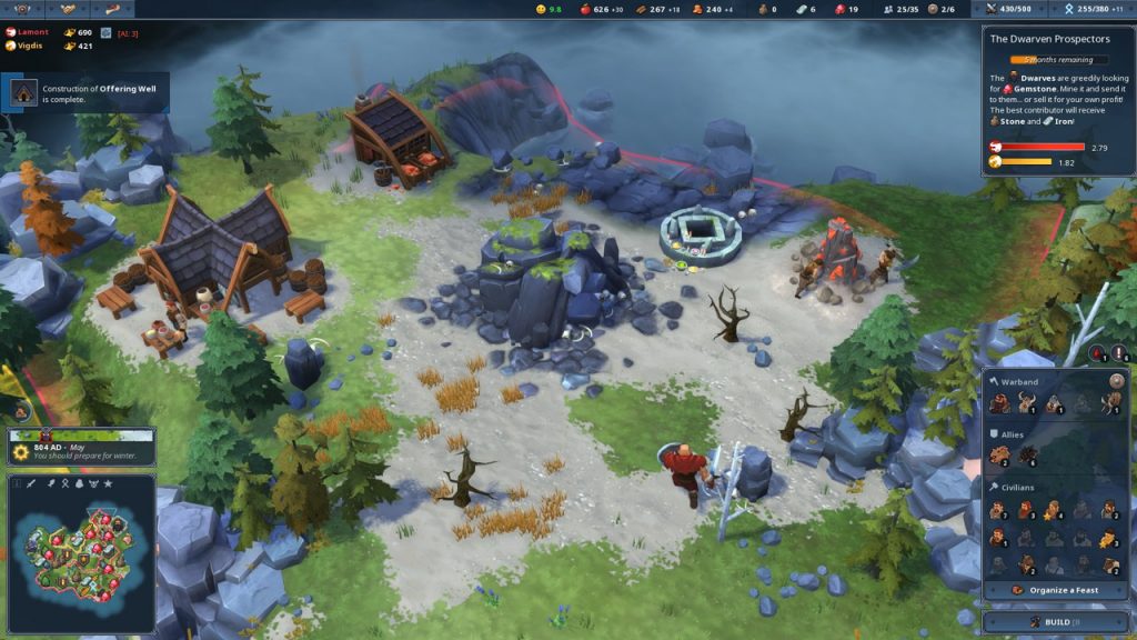 Sendo honesto, diplomacia nunca foi o ponto forte de Northgard. Kröwns & Daggers visa mudar isso com a adição de uma tela de diplomacia que agora é separada entre os clãs jogáveis e as facções neutras. Dentro dela você poderá – caso tenha obtido informaçõe sobre o clã oponente – declarar rivalidades.