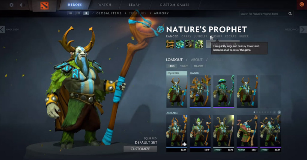 De acordo com a Valve, agora ficará mais fácil personalizar o seu herói graças a uma nova interface de seleção e personalização, que pode ser vista abaixo. Você poderá aplicar filtros avançados como Nuker ou Jungler.