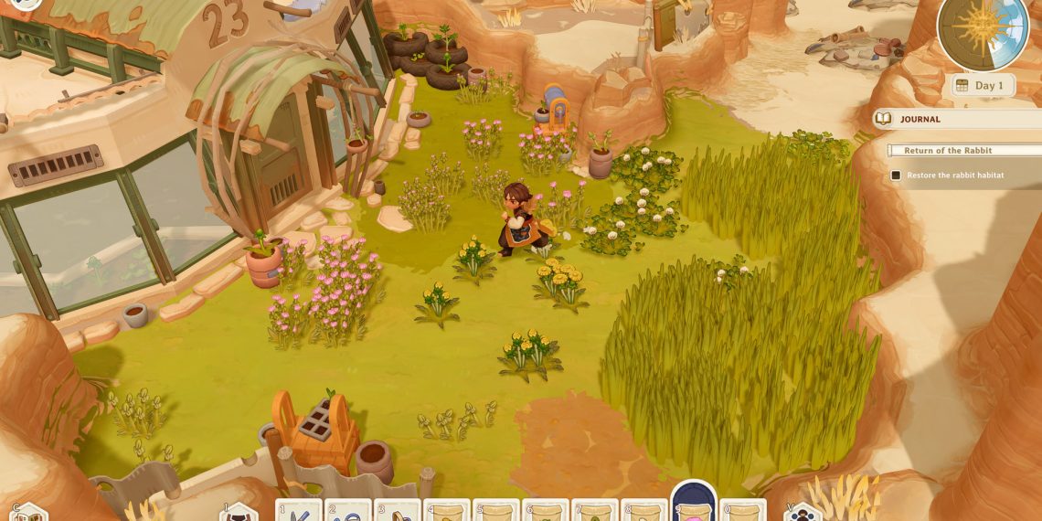 O jogo em si me lembra bastante “Terra Nil” caso você controlasse um personagem ao invés de ser puramente um jogo de estratégia. Há todo um elemento de “quebra-cabeça” no qual você tem que interconectar vários elementos e plantar as sementes corretas para que cresçam e o ecossistema retorne a vida.