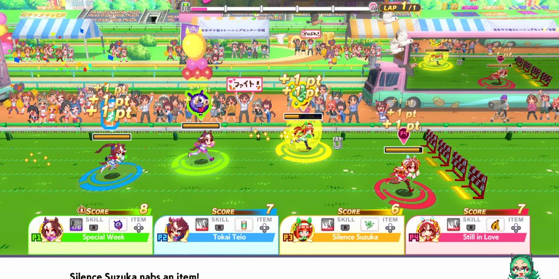 Do que o trailer de lançamento indica, “Umamusume: Pretty Derby – Party Dash” segue uma parte da história do anime, mas se foca bastante em eventos para dois ou mais jogadors. Você pode escolher dentre uma das 25 personagens e jogar minigames como basquete, queimada, corrida com obstáculos e… ver quem come mais?