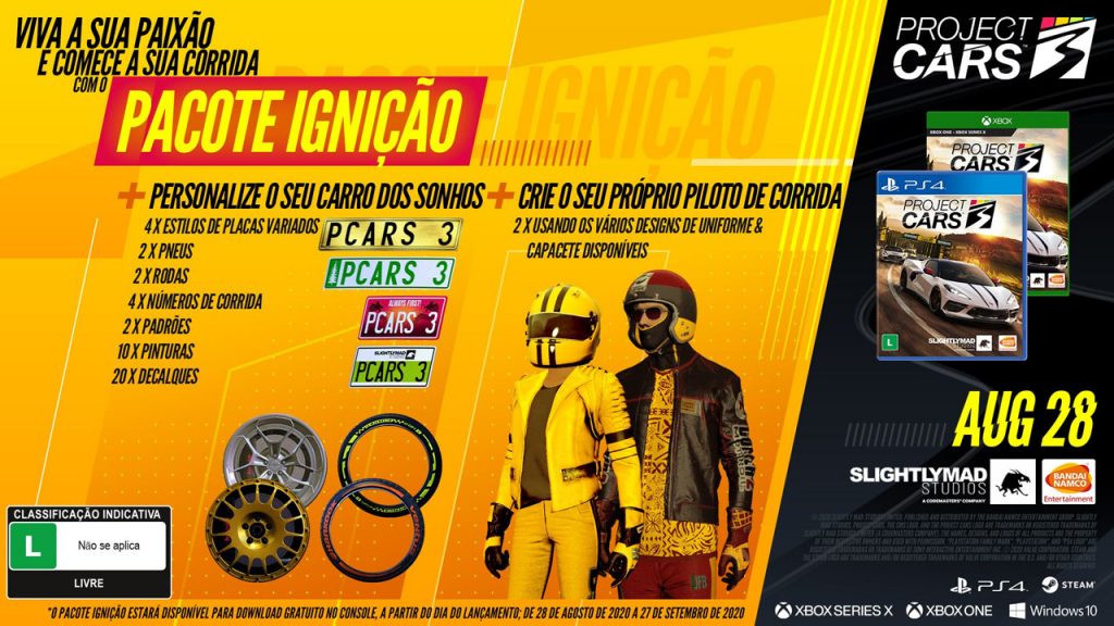Em nota, a Baindai Namco e a Sligthly Mad Studios divulgaram um novo, apesar de curto, trailer de Project Cars 3 e o início da pré-venda. O jogo estará disponível em duas versões Standard e Deluxe – que inclui o passe de temporada e garante acesso ao jogo com três dias de antecedência (25 de agosto).
