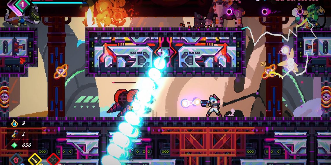 Embora ele tenha uma ou outra pitada de Mega Man, “Elsie” é o tipo de jogo de plataforma que “não tem tempo para nada”. Comece um estágio, seja atacado por dezenas de inimigos, desvie dos seus ataques e tente chegar até o final sem tomar muito dano. Você recebe novas habilidades passivas e ativas à medida em que você avança nas fases, muitas delas mudando o seu estilo de combate ou incluindo novos tipos de armas.