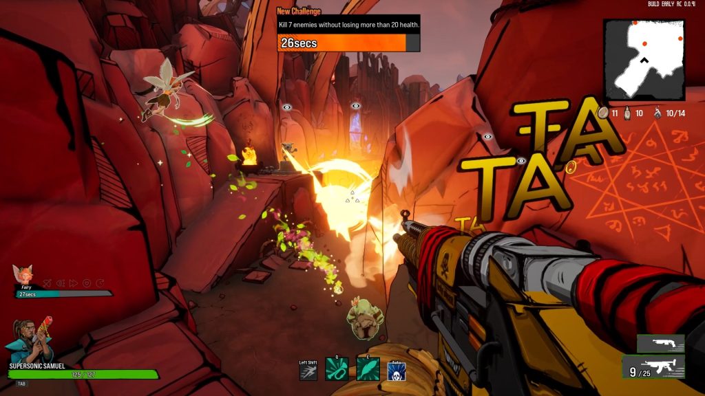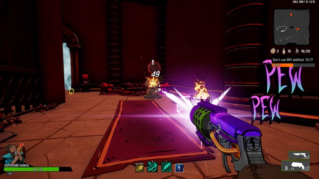 O que aumenta o meu interesse por “Holy Shoot” é o seu sistema de blueprints. Nada inovador, mas a “promessa” de que o jogo ao menos vai ter um armamento variado. Em suma, você vai poder obter novas armas e habilidades ao longo de uma run. Quando morrer, é possível desbloqueá-las permanentemente para futuras runs com uma moeda especial.