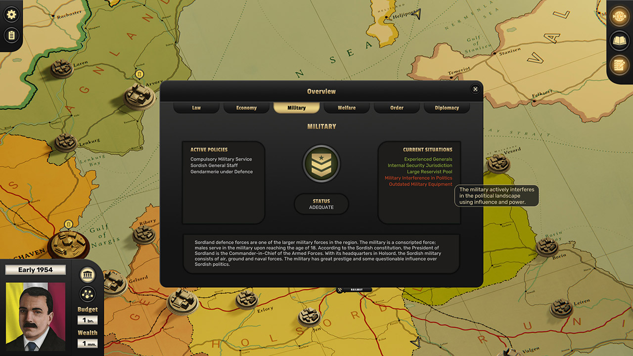 A demo, que está disponível no Steam durante a LudoNarraCon – evento sobre adventures, RPGs e narrativa – conta a história de Sordland, um país que viveu duas décadas de ditadura militar e agora tem o seu primeiro presidente. Todavia, a “velha guarda” de seu partido ainda manda e desmanda nas pautas de todas as esferas socioeconômicas.