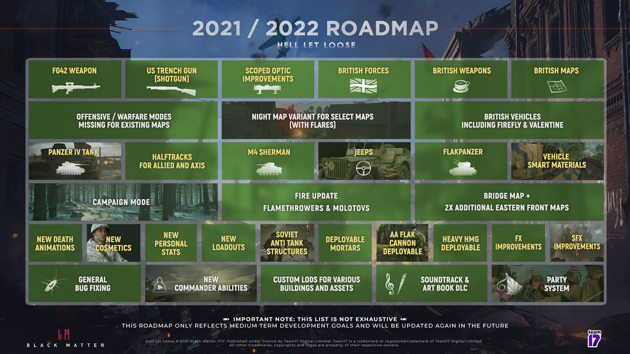 A lista de alterações da versão 1.0 de Hell Let Loose está disponível no fórum do Steam e o Roadmap para este ano e 2022 está abaixo: