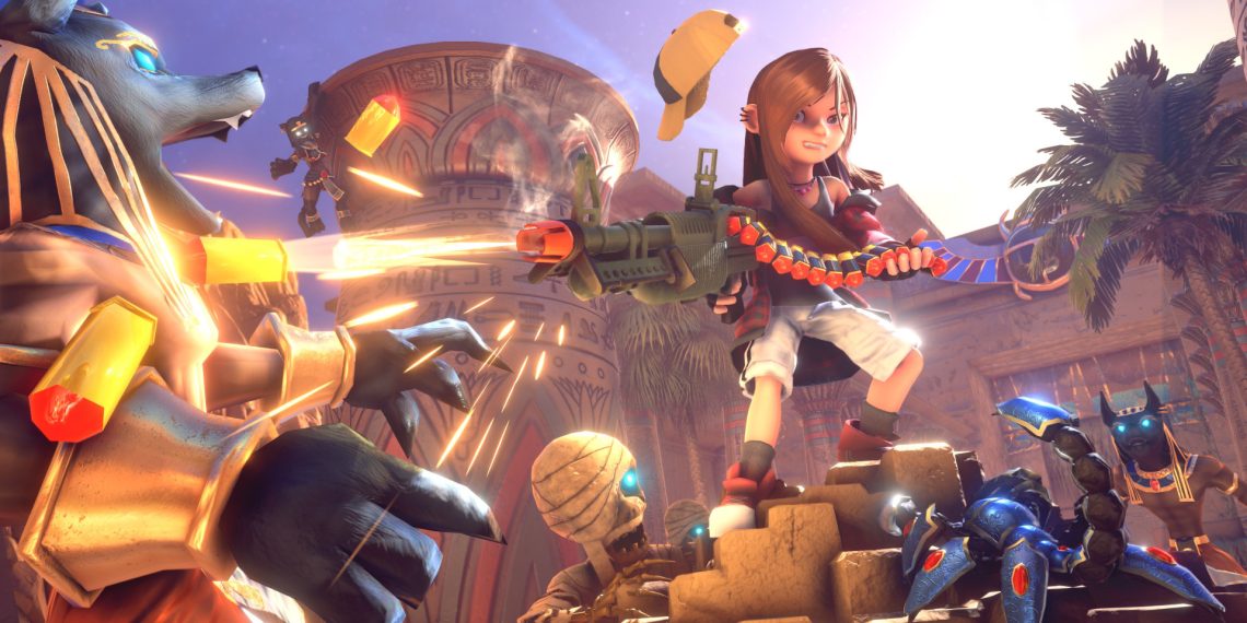 Para você ter uma noção, os minutos iniciais do game trazem inimigos que parecem ter sido tirados da franquia “Serious Sam”, há mapas “inspirados” na Área 51, o shooter “Blood”, e a última atualização antes da versão 1.0 – “Marshmalott” trouxe um novo reino de marshmellow, 13 novas armas, 2 novos veículos e um sistema mais robusto de mechs. Ah, e o jogo ainda tem um modo online para até 16 jogadores.