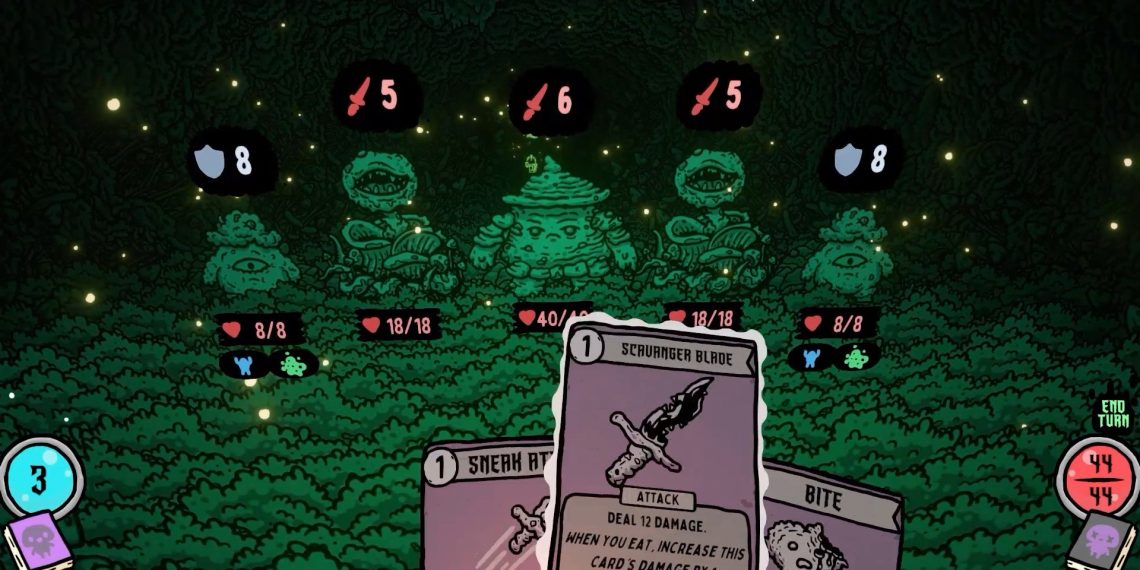 Já na hora do combate “Shroom and Gloom” volta para o estilo tradicional de equilibrar a quantidade de cartas na mão, saber como se defender dos ataques dos oponentes e, com sorte, sair vivo. O novo jogo da equipe que estreou em 2020 com “Teenage Blob” pode não trazer a combinação mais “inovadora” que já vi, mas com certeza me ganhou na estética.