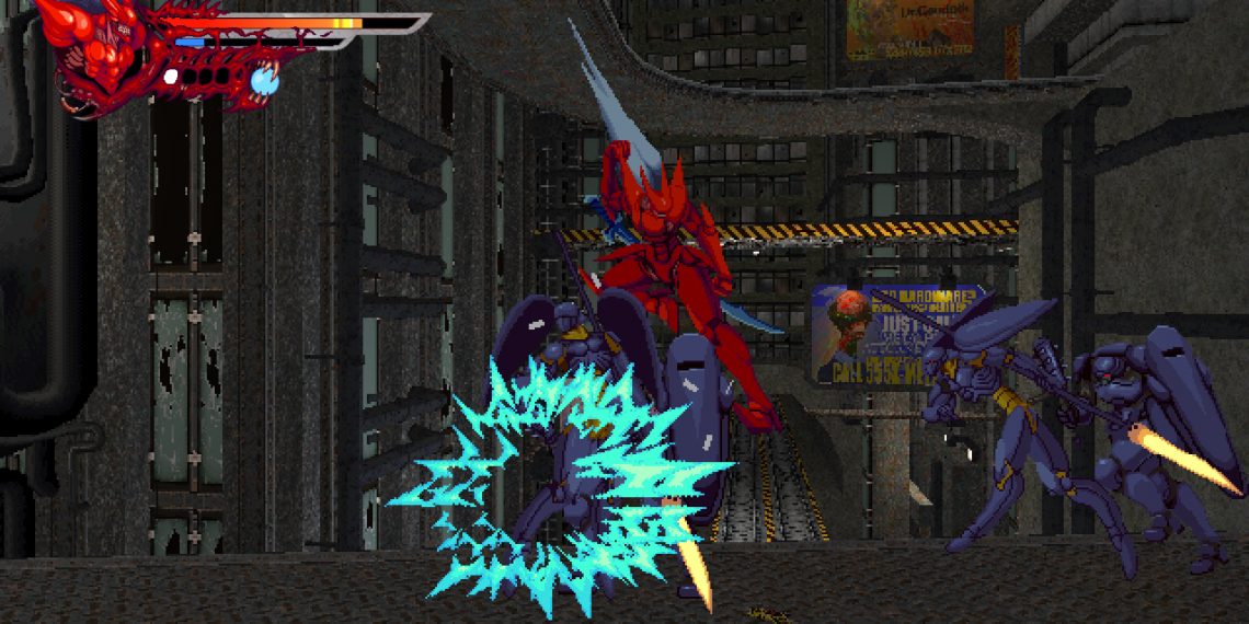 Eu conheci a Poppy Works por seu incrível trabalho em Devil Engine, e mais uma vez a desenvolvedora dá um espetáculo nos sistemas de combate. A melhor forma que consigo descrevê-lo, ao menos por ora é uma união do combate de “Strider 1 e 2”, ênfase em combos e sprites e animações belíssimas que me lembram os jogos 2.5D da era Dreamcast.