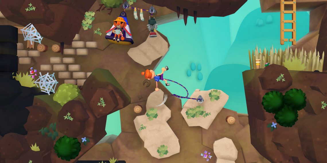 O que me atraiu bastante em “Surmount” são as suas mecânicas de escalada. Ao invés de prender ganchos e afins, você usa uma corda para se impulsionar de um gancho a outro e tenta se equilibrar em “plataformas”.