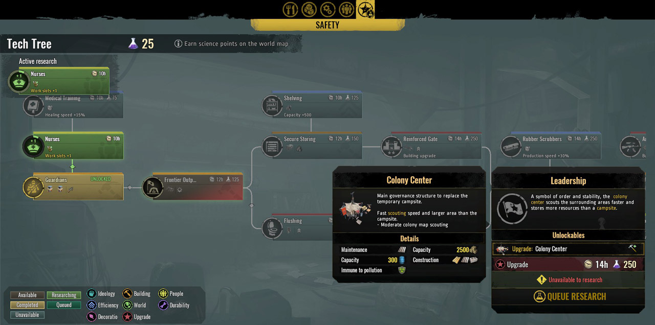 Outra mudança imensa para Surviving the Aftermath, e uma que eu fico bem feliz de ver sendo aplicada, é o sistema de “felicidade” de seus habitantes. Até então era muito “fácil” de deixá-los felizes com o mínimo – água, comida e um teto. A partir dessa atualização quanto maior a sua colônia, maior a necessidade de serviços não essenciais, como entretenimento. Isso é “solucionado” com novas edificações de entretenimento.