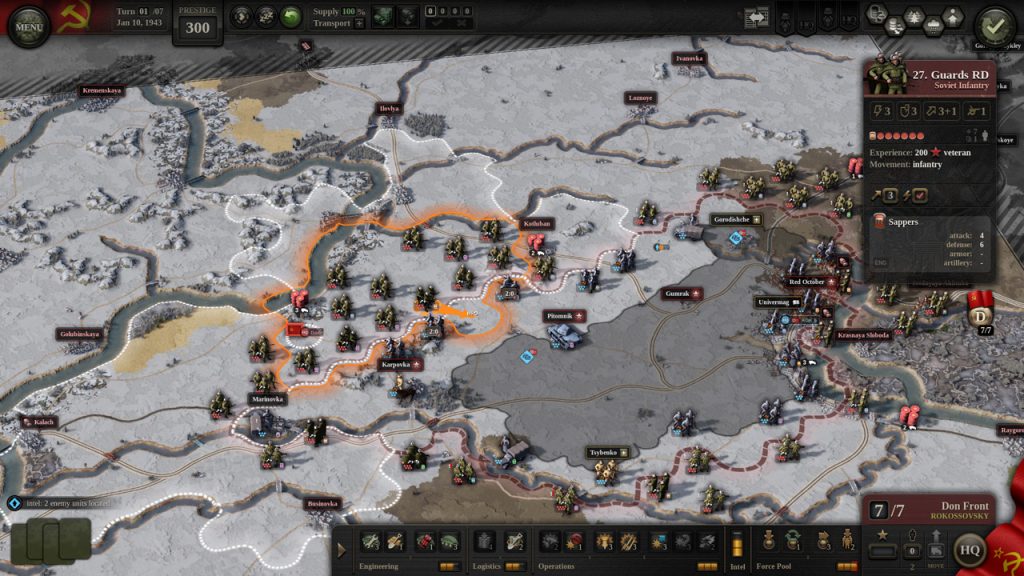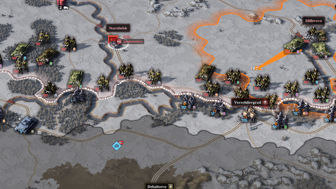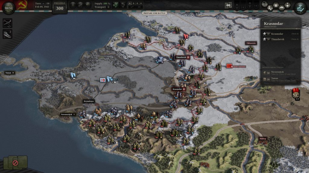 Dou destaque especial para esta última pois, embora enfraquecidas, a maioria das tropas ainda tinham um considerável poderio de fogo e as unidades soviéticas lutaram consideravelmente para quebrar as barreiras colocada pelo exército Alemão e Romeno que fizeram parte da ofensiva. Considerando o sistema de logística de “Unity of Command 2”, não tenho a sombra de dúvidas de que saber movimentar as tropas para que elas não fiquem sem suprimentos seja mais do que essencial.